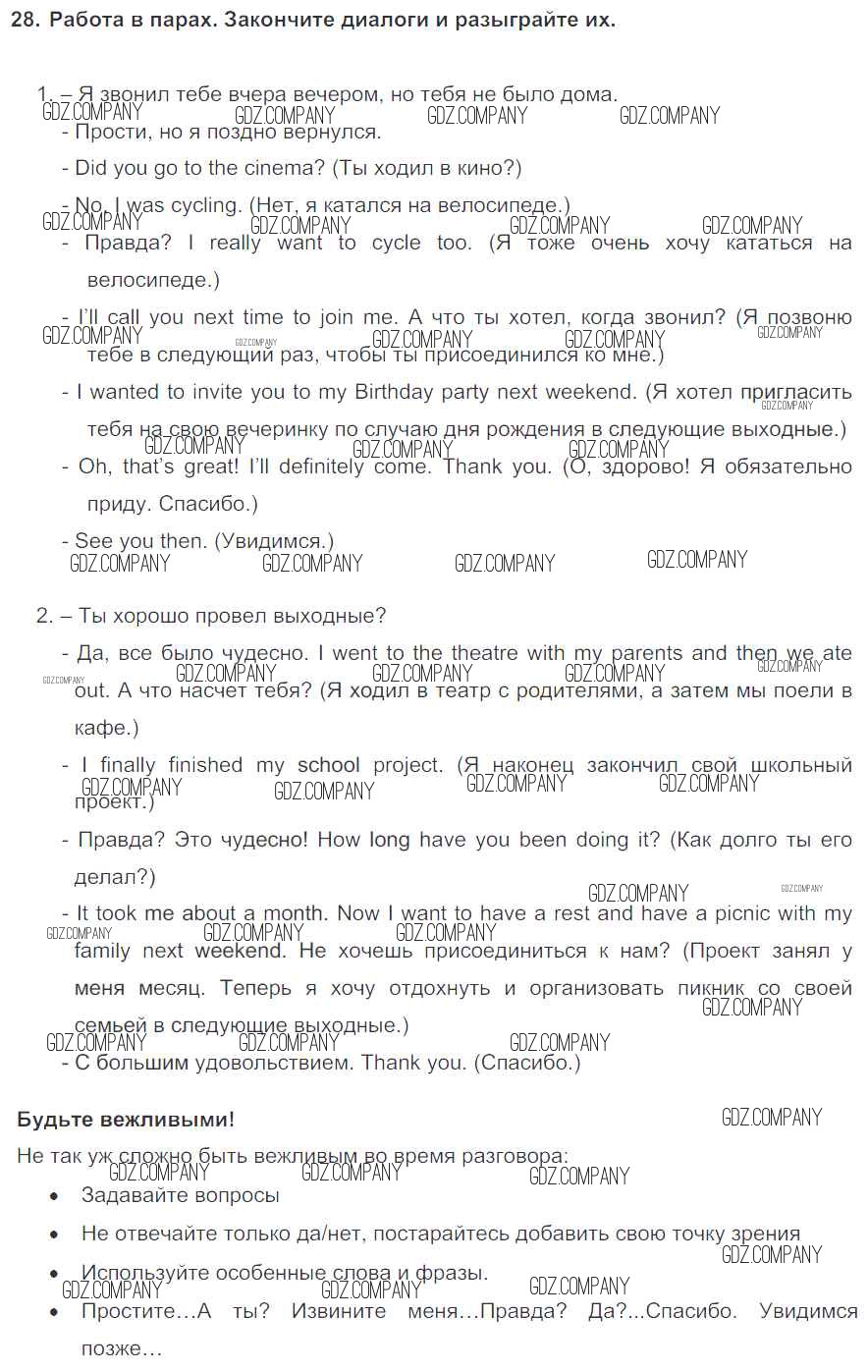 Здесь готовые ответы по Английскому языку за 6 (шестой) класс от Биболетова, Денисенко, Трубанева Учебник Enjoy English (издательство: Титул от 2015 г.) № 28