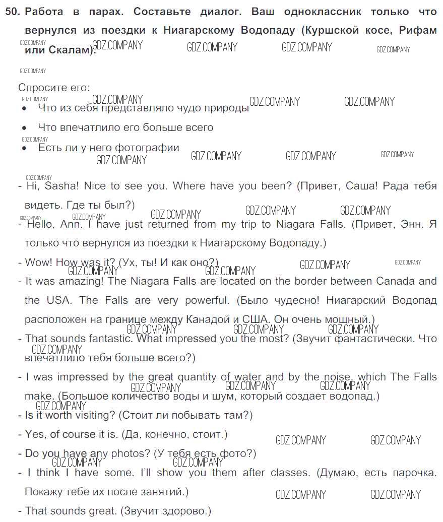 Здесь готовые ответы по Английскому языку за 6 (шестой) класс от Биболетова, Денисенко, Трубанева Учебник Enjoy English (издательство: Титул от 2015 г.) № 50