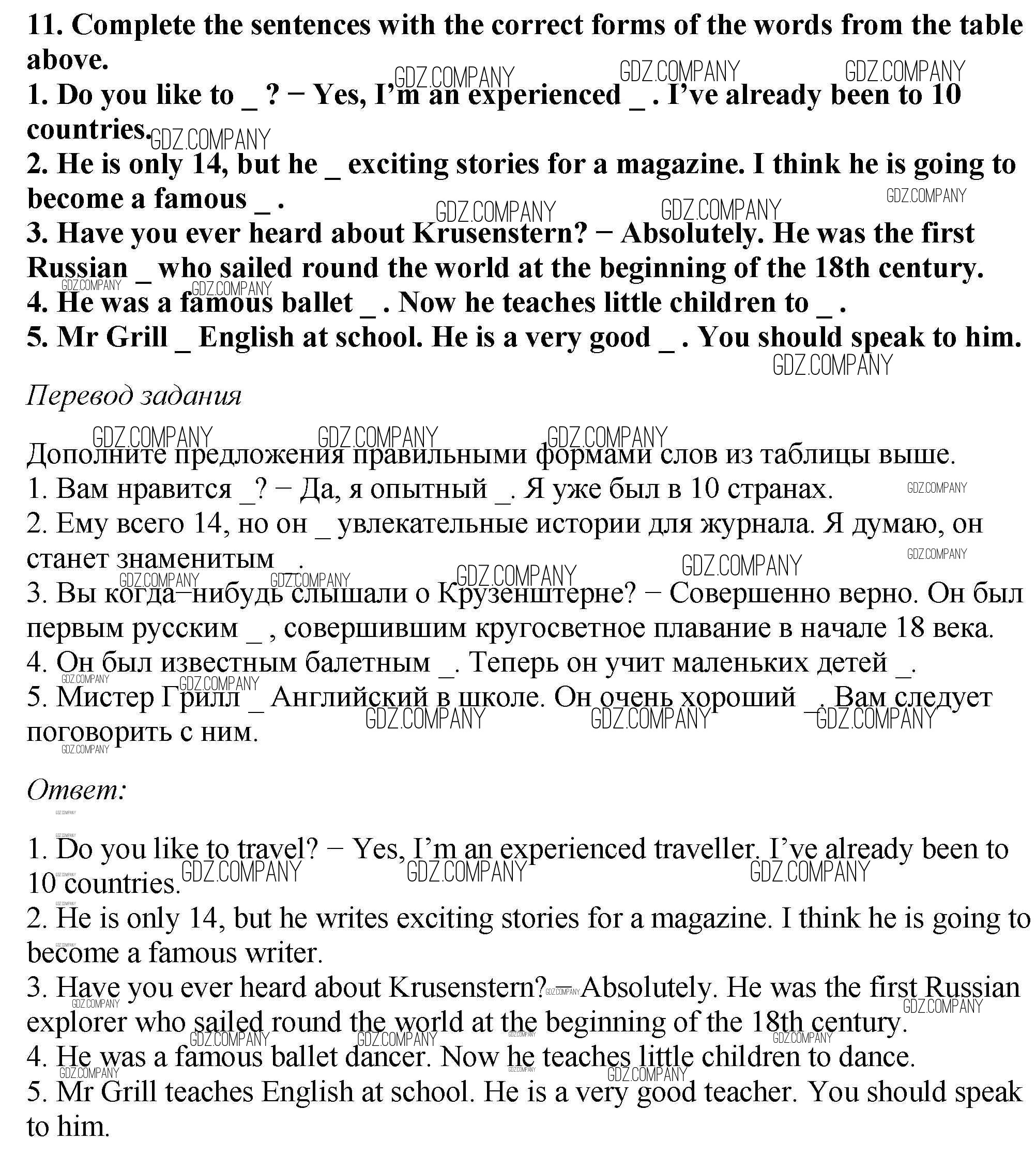 Здесь готовые ответы по Английскому языку за 6 (шестой) класс от Биболетова, Денисенко, Трубанева Рабочая тетрадь Enjoy English (издательство: Дрофа от 2019 г.) № 11