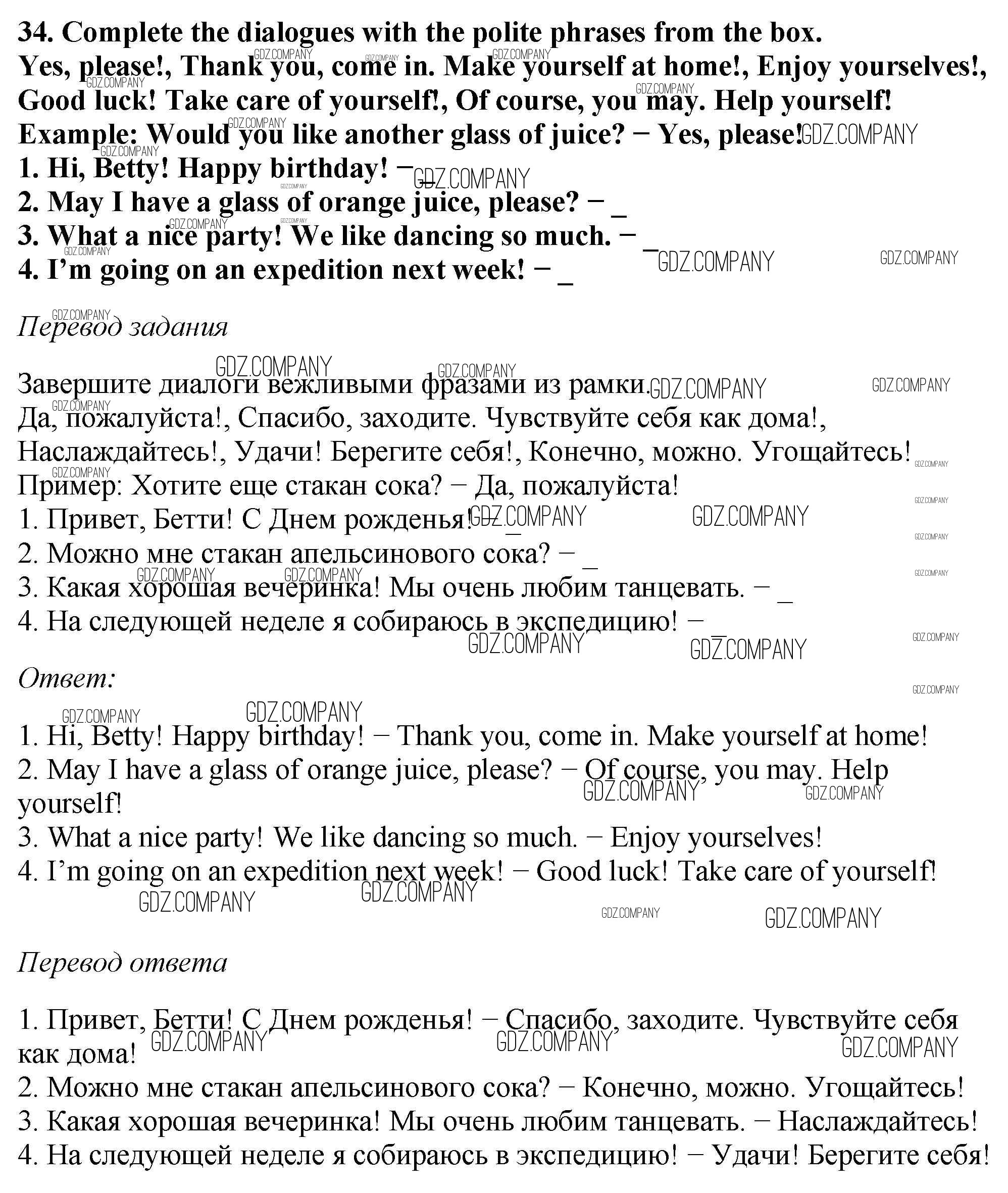 Здесь готовые ответы по Английскому языку за 6 (шестой) класс от Биболетова, Денисенко, Трубанева Рабочая тетрадь Enjoy English (издательство: Дрофа от 2019 г.) № 34