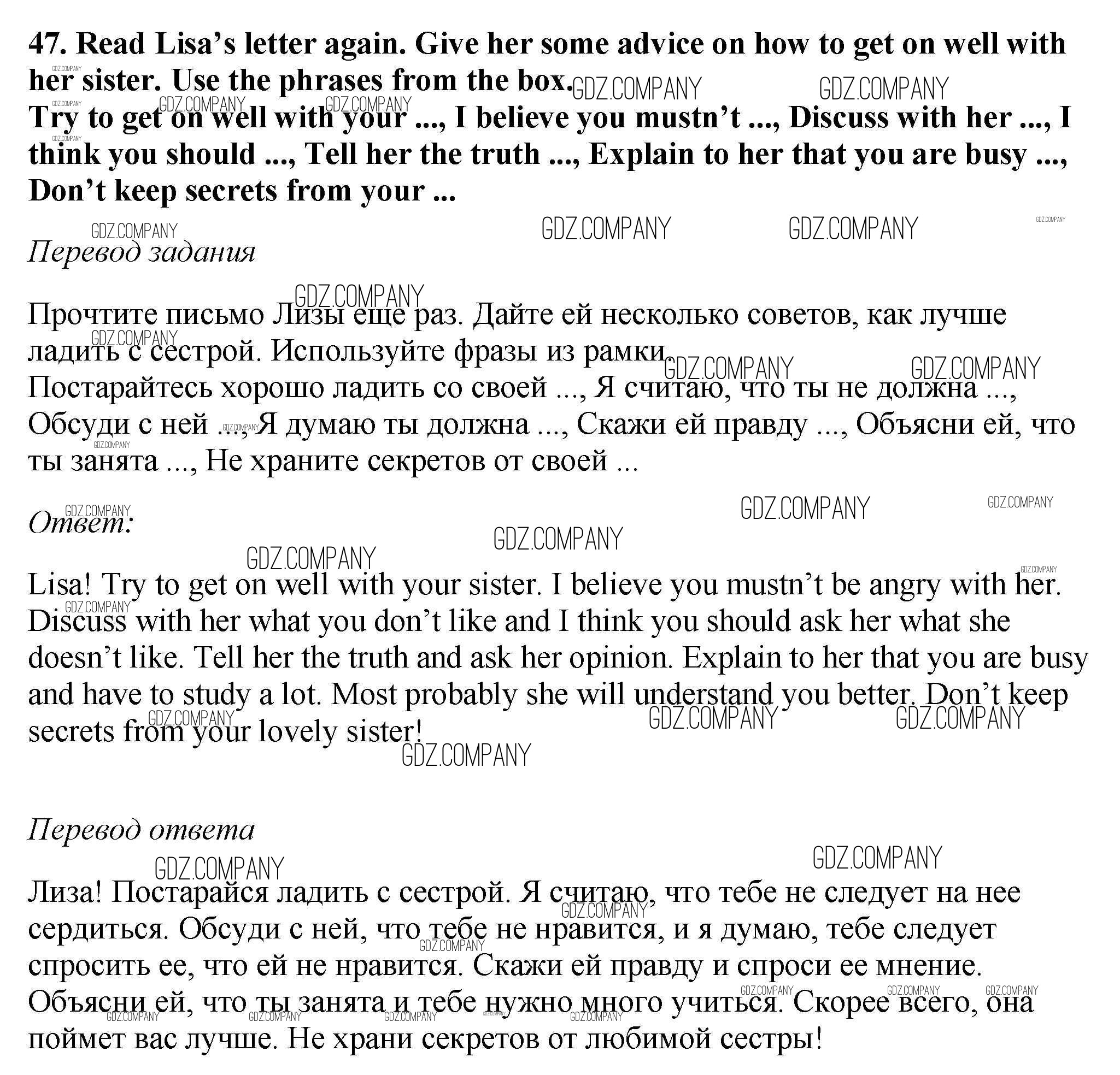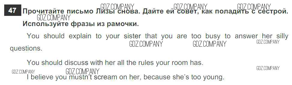 Здесь готовые ответы по Английскому языку за 6 (шестой) класс от Биболетова, Денисенко, Трубанева Рабочая тетрадь Enjoy English (издательство: Дрофа от 2019 г.) № 47