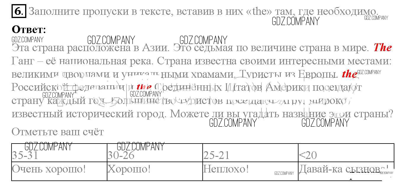 Здесь готовые ответы по Английскому языку за 6 (шестой) класс от Биболетова, Денисенко, Трубанева Рабочая тетрадь Enjoy English (издательство: Дрофа от 2019 г.) № 6