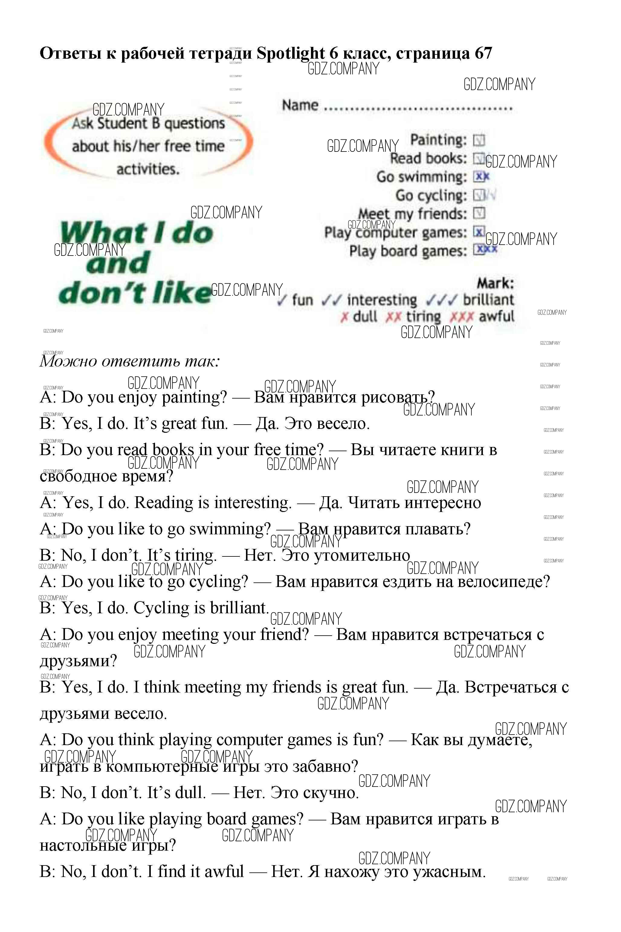 Здесь готовые ответы по Английскому языку за 6 (шестой) класс от Эванс, Дули, Подоляко, Ваулина Рабочая тетрадь Spotlight (издательство: Просвещение от 2011 г.) № 67