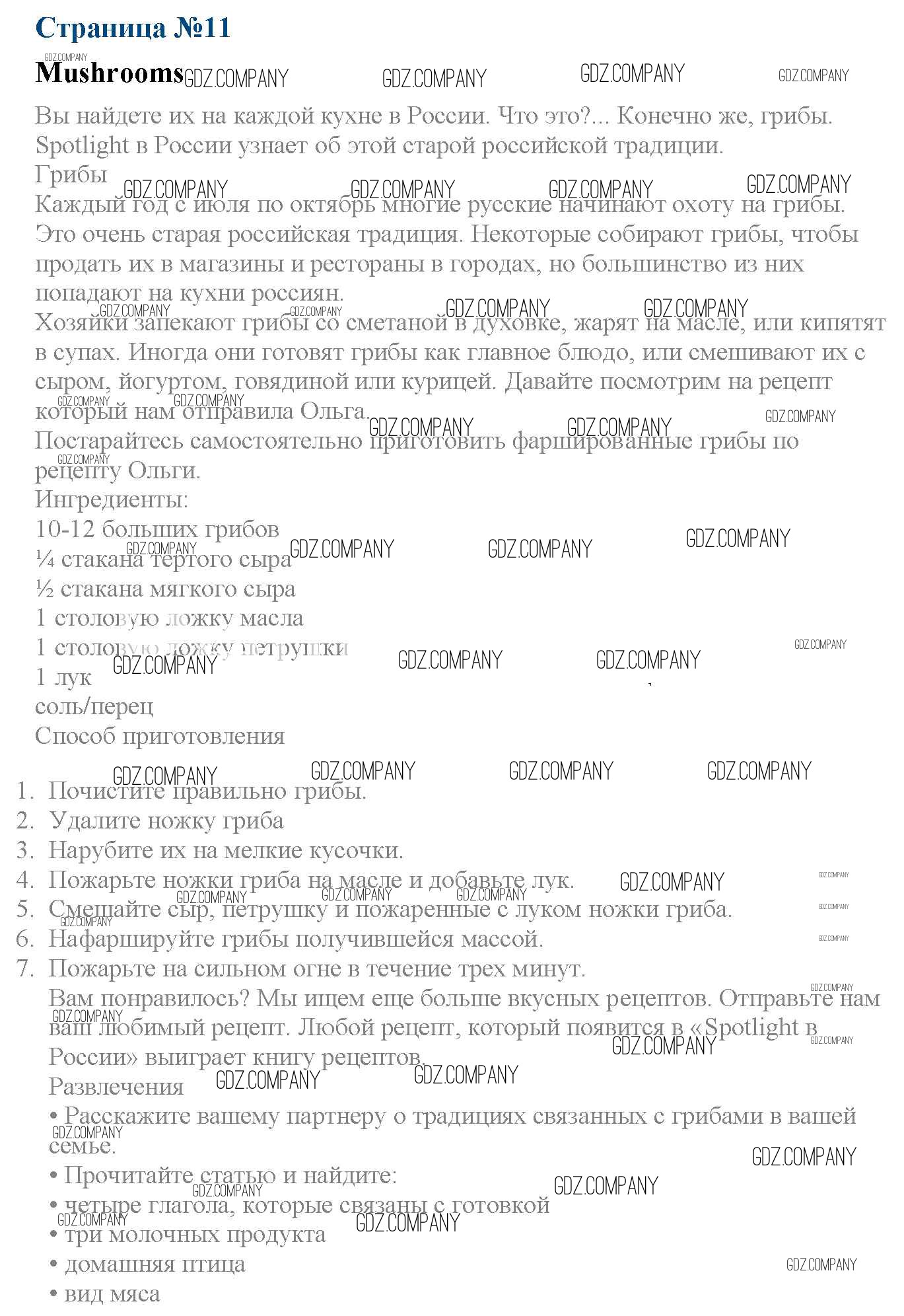 Здесь готовые ответы по Английскому языку за 6 (шестой) класс от Ваулина, Дули, Эванс, Подоляко Учебник Spotlight (издательство: Просвещение от 2017 г.) № 11