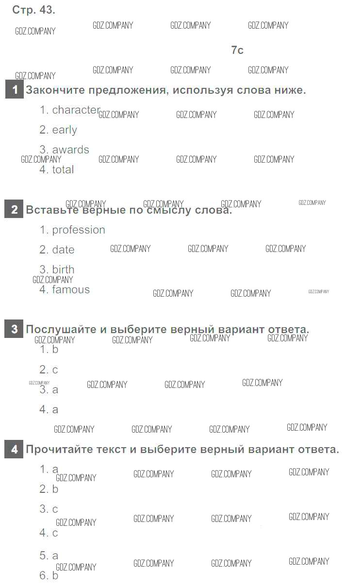 Здесь готовые ответы по Английскому языку за 6 (шестой) класс от Ваулина, Дули, Подоляко, Эванс Рабочая тетрадь Spotlight (издательство: Просвещение от 2016 г.) № 43
