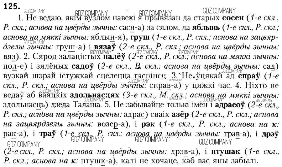 Здесь готовые ответы по Белорусскому языку за 6 (шестой) класс от Красней, Лаурель, Рачэўскі Учебник (издательство: Национальный институт образования от 2015 г.) № 125