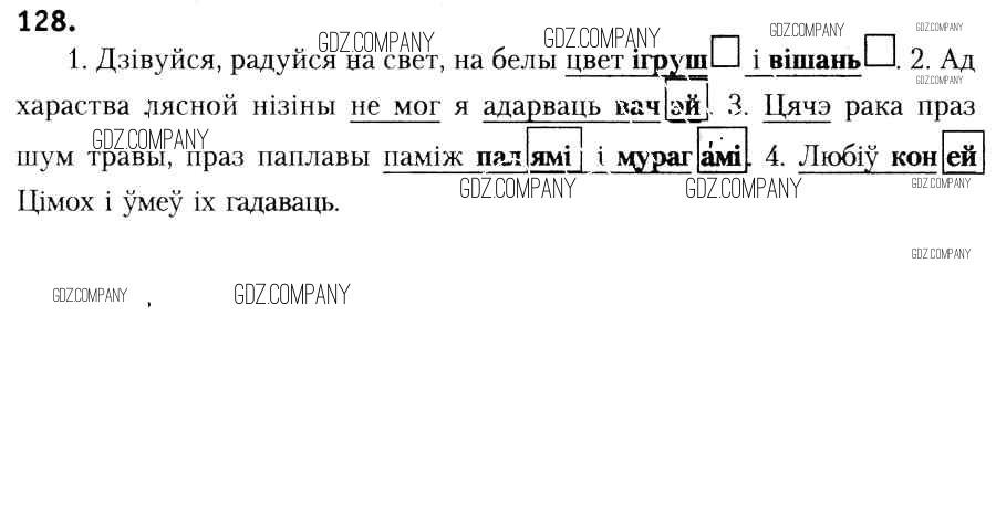 Здесь готовые ответы по Белорусскому языку за 6 (шестой) класс от Красней, Лаурель, Рачэўскі Учебник (издательство: Национальный институт образования от 2015 г.) № 128