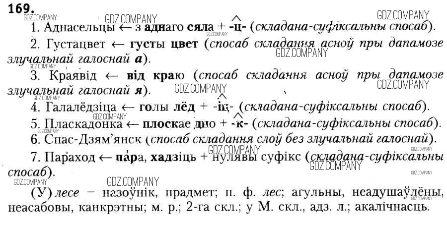 Здесь готовые ответы по Белорусскому языку за 6 (шестой) класс от Красней, Лаурель, Рачэўскі Учебник (издательство: Национальный институт образования от 2015 г.) № 169
