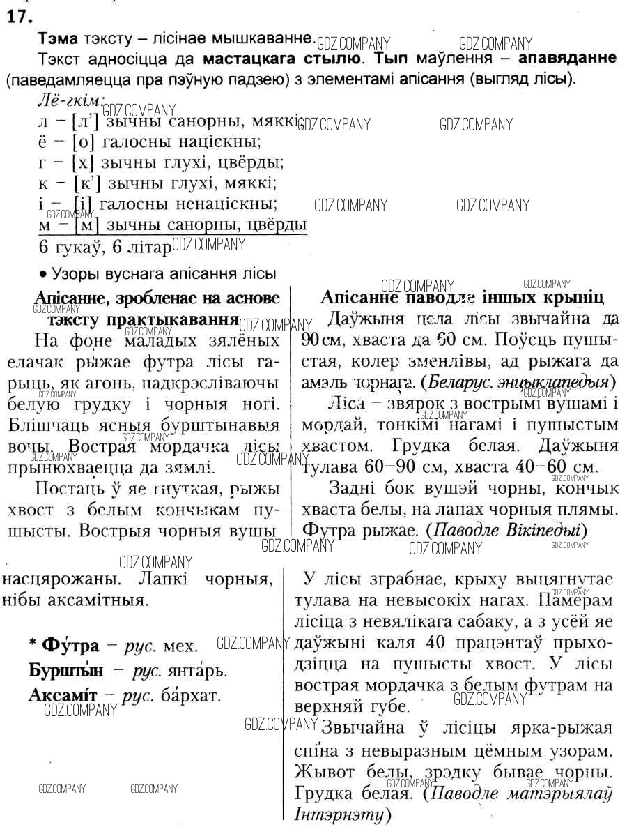 Здесь готовые ответы по Белорусскому языку за 6 (шестой) класс от Красней, Лаурель, Рачэўскі Учебник (издательство: Национальный институт образования от 2015 г.) № 17