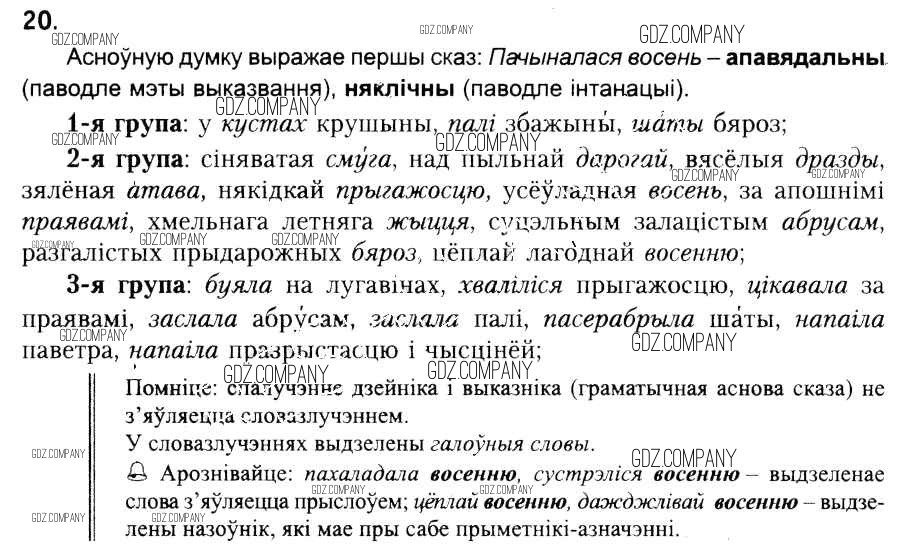 Здесь готовые ответы по Белорусскому языку за 6 (шестой) класс от Красней, Лаурель, Рачэўскі Учебник (издательство: Национальный институт образования от 2015 г.) № 20