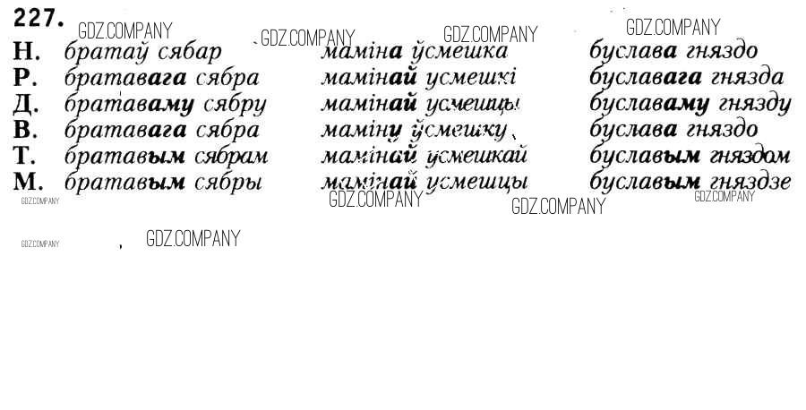 Здесь готовые ответы по Белорусскому языку за 6 (шестой) класс от Красней, Лаурель, Рачэўскі Учебник (издательство: Национальный институт образования от 2015 г.) № 227