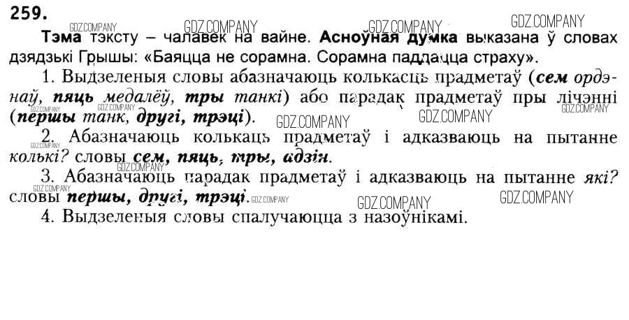 Здесь готовые ответы по Белорусскому языку за 6 (шестой) класс от Красней, Лаурель, Рачэўскі Учебник (издательство: Национальный институт образования от 2015 г.) № 259