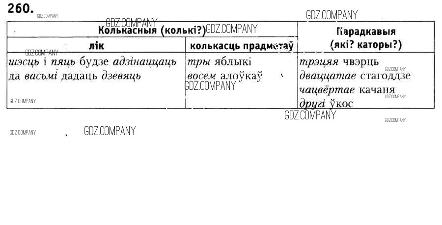 Здесь готовые ответы по Белорусскому языку за 6 (шестой) класс от Красней, Лаурель, Рачэўскі Учебник (издательство: Национальный институт образования от 2015 г.) № 260
