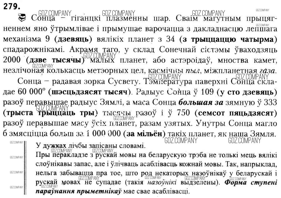 Здесь готовые ответы по Белорусскому языку за 6 (шестой) класс от Красней, Лаурель, Рачэўскі Учебник (издательство: Национальный институт образования от 2015 г.) № 279