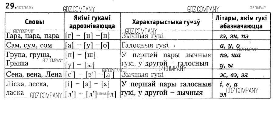 Здесь готовые ответы по Белорусскому языку за 6 (шестой) класс от Красней, Лаурель, Рачэўскі Учебник (издательство: Национальный институт образования от 2015 г.) № 29