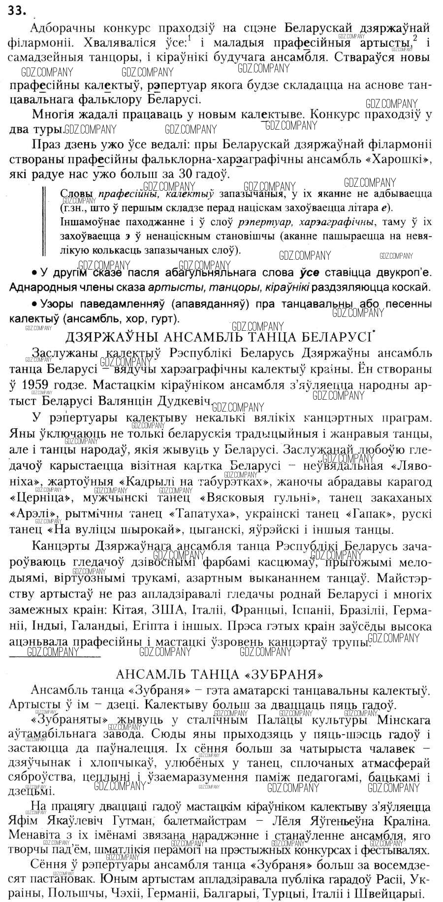 Здесь готовые ответы по Белорусскому языку за 6 (шестой) класс от Красней, Лаурель, Рачэўскі Учебник (издательство: Национальный институт образования от 2015 г.) № 33