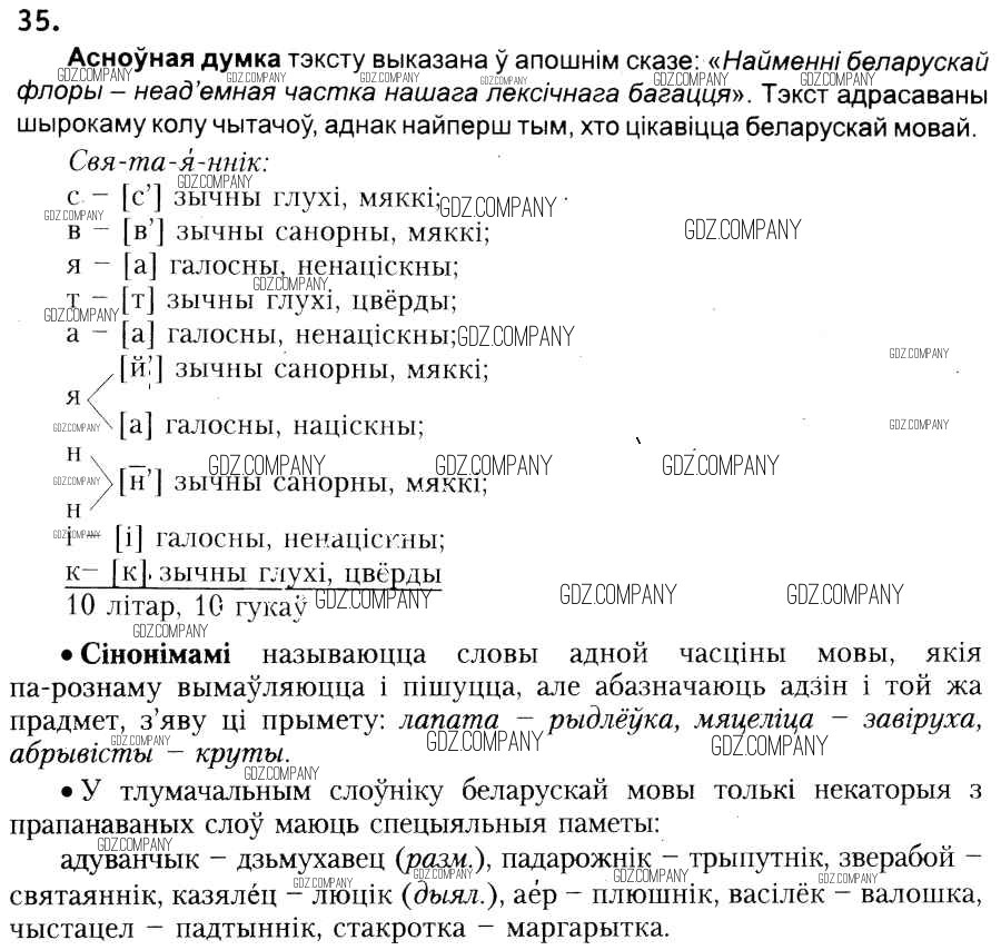 Здесь готовые ответы по Белорусскому языку за 6 (шестой) класс от Красней, Лаурель, Рачэўскі Учебник (издательство: Национальный институт образования от 2015 г.) № 35