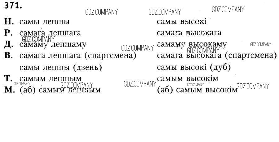 Здесь готовые ответы по Белорусскому языку за 6 (шестой) класс от Красней, Лаурель, Рачэўскі Учебник (издательство: Национальный институт образования от 2015 г.) № 371