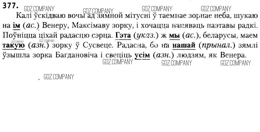 Здесь готовые ответы по Белорусскому языку за 6 (шестой) класс от Красней, Лаурель, Рачэўскі Учебник (издательство: Национальный институт образования от 2015 г.) № 377