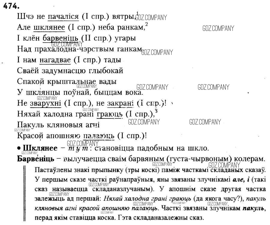 Здесь готовые ответы по Белорусскому языку за 6 (шестой) класс от Красней, Лаурель, Рачэўскі Учебник (издательство: Национальный институт образования от 2015 г.) № 474