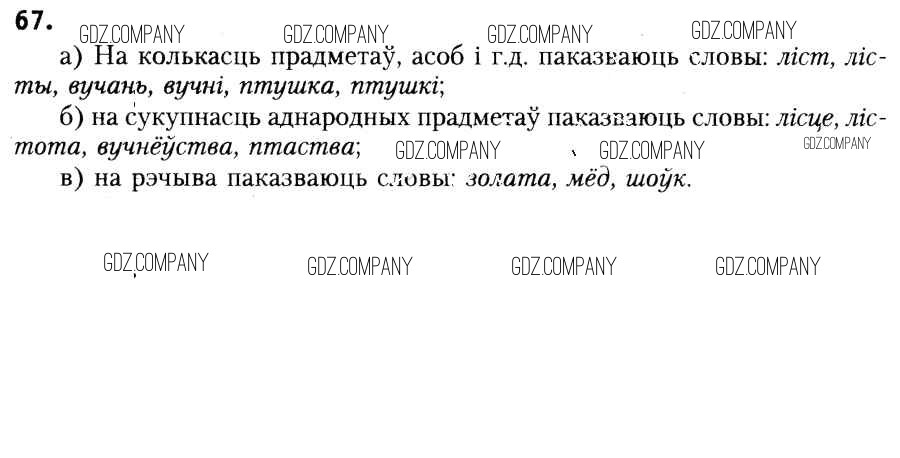 Здесь готовые ответы по Белорусскому языку за 6 (шестой) класс от Красней, Лаурель, Рачэўскі Учебник (издательство: Национальный институт образования от 2015 г.) № 67