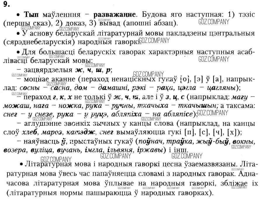 Здесь готовые ответы по Белорусскому языку за 6 (шестой) класс от Красней, Лаурель, Рачэўскі Учебник (издательство: Национальный институт образования от 2015 г.) № 9