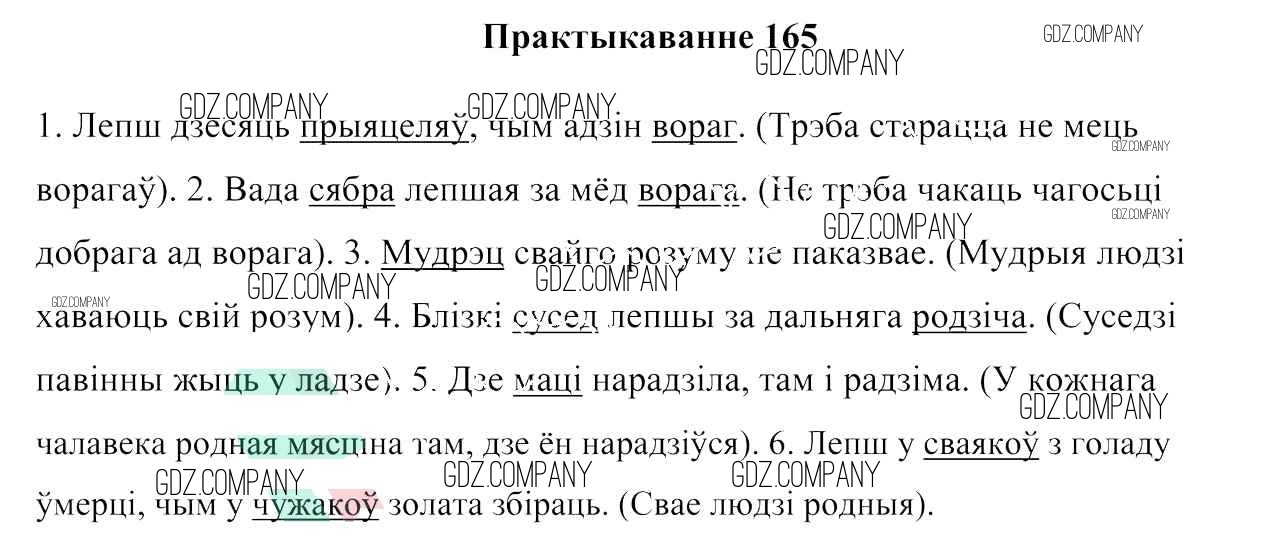 Здесь готовые ответы по Белорусскому языку за 6 (шестой) класс от Валочка, Зелянко, Мартынкевіч, Якуба, Бажкова Учебник (издательство: Национальный институт образования от 2020 г.) № 165