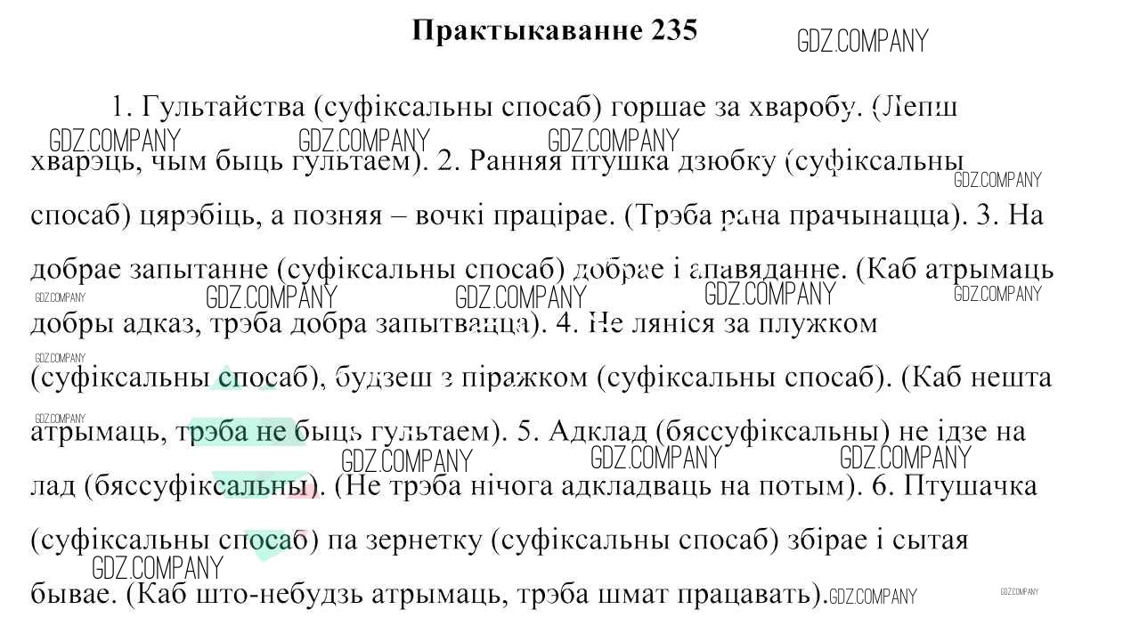 Здесь готовые ответы по Белорусскому языку за 6 (шестой) класс от Валочка, Зелянко, Мартынкевіч, Якуба, Бажкова Учебник (издательство: Национальный институт образования от 2020 г.) № 235