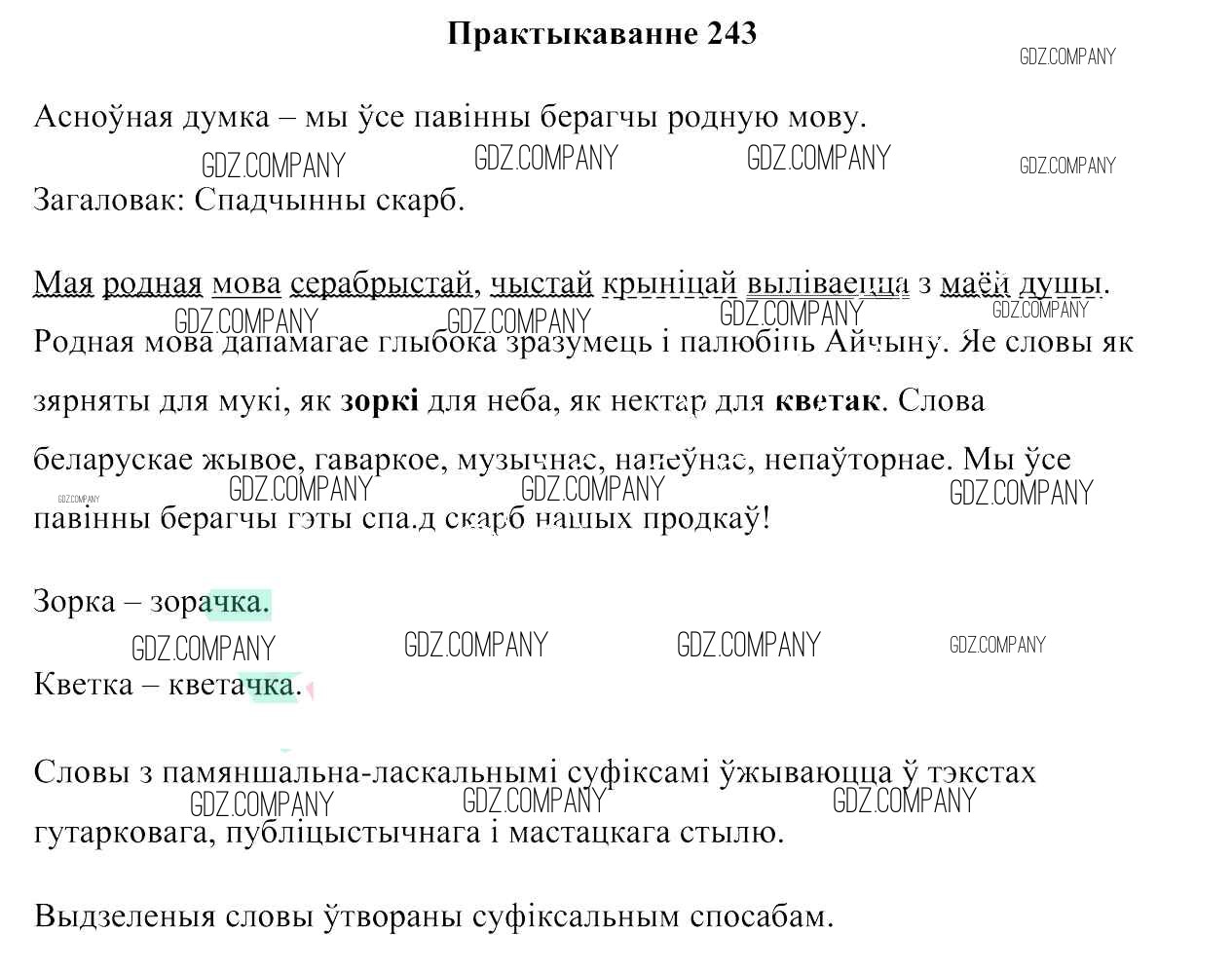 Здесь готовые ответы по Белорусскому языку за 6 (шестой) класс от Валочка, Зелянко, Мартынкевіч, Якуба, Бажкова Учебник (издательство: Национальный институт образования от 2020 г.) № 243