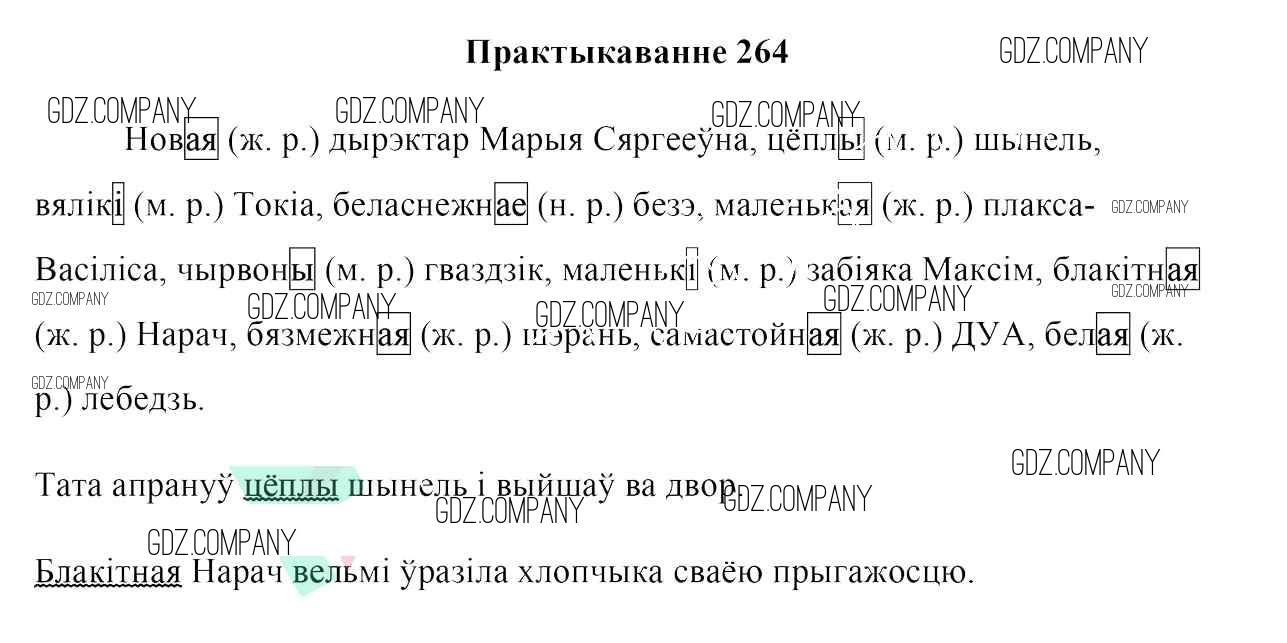Здесь готовые ответы по Белорусскому языку за 6 (шестой) класс от Валочка, Зелянко, Мартынкевіч, Якуба, Бажкова Учебник (издательство: Национальный институт образования от 2020 г.) № 264
