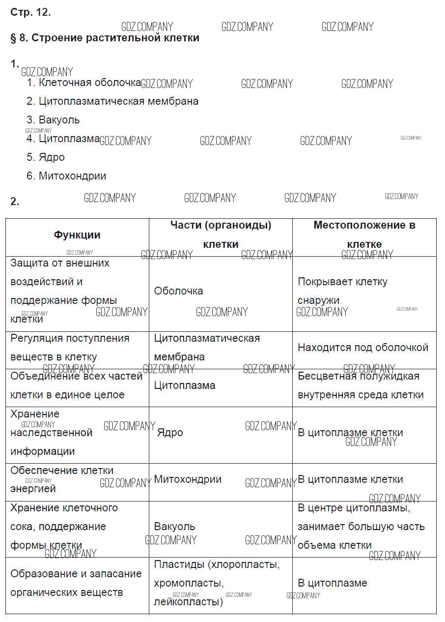 Здесь готовые ответы по Биологии за 6 (шестой) класс от Исаева, Романова Рабочая тетрадь Инновационная школа (издательство: Русское слово от 2017 г.) № 12