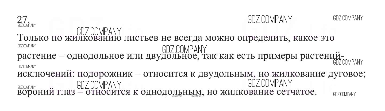 Здесь готовые ответы по Биологии за 6 (шестой) класс от Пасечник Рабочая тетрадь УМК (издательство: Дрофа от 2017 г.) № 27