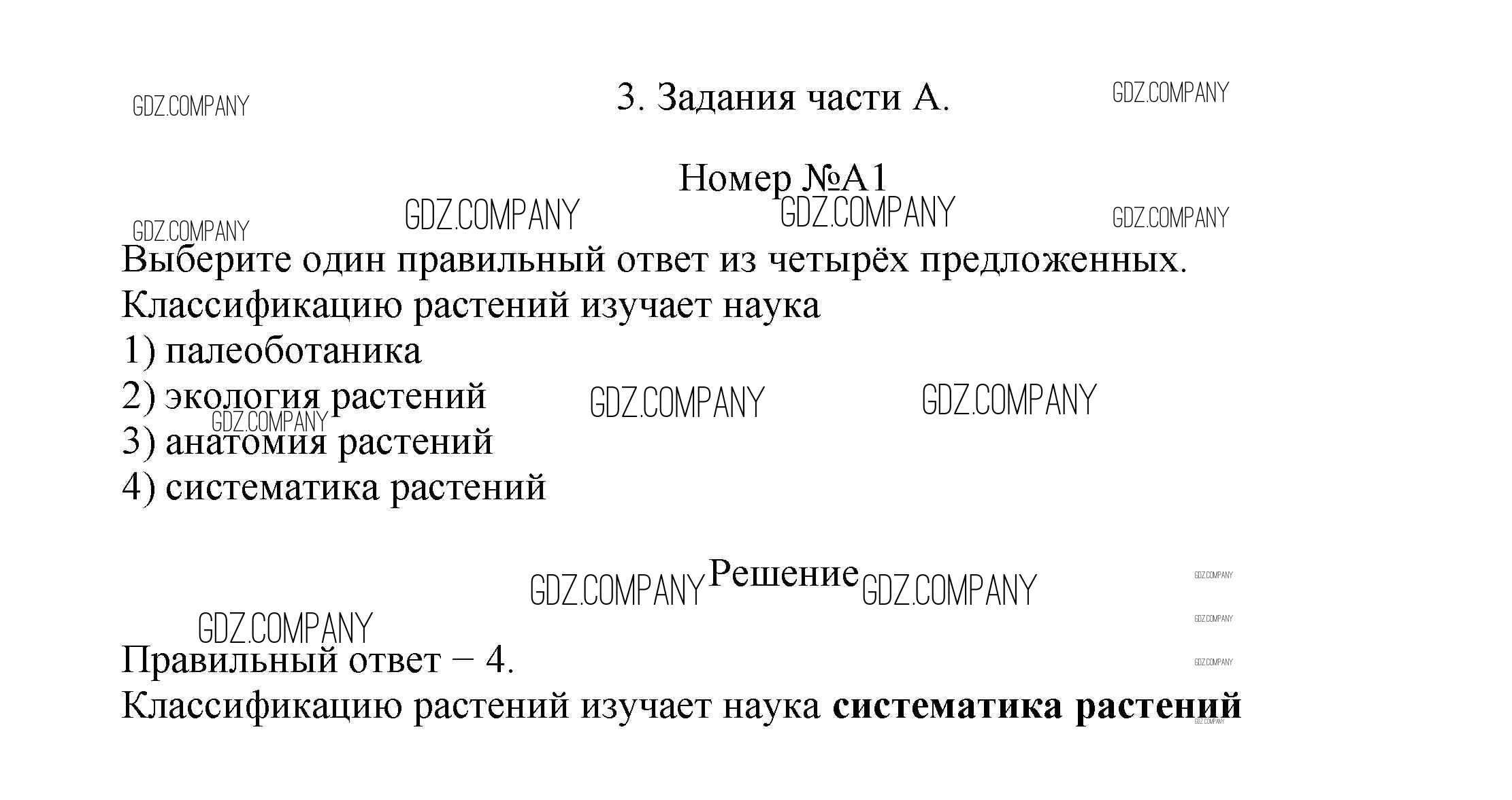 тренировочные задания / классификации растений / задания части A / 1