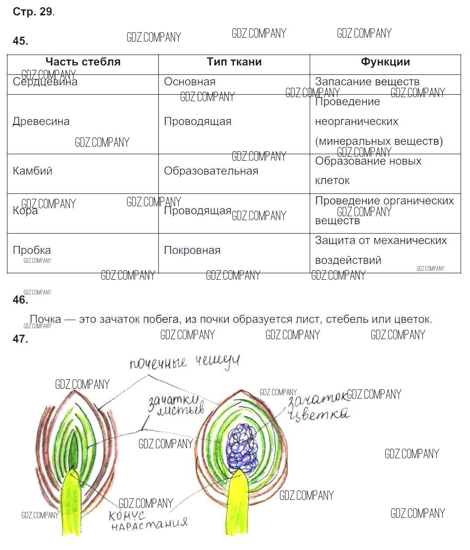 Здесь готовые ответы по Биологии за 6 (шестой) класс от Сонин Рабочая тетрадь Живой организм (издательство: Дрофа от 2017 г.) № 29