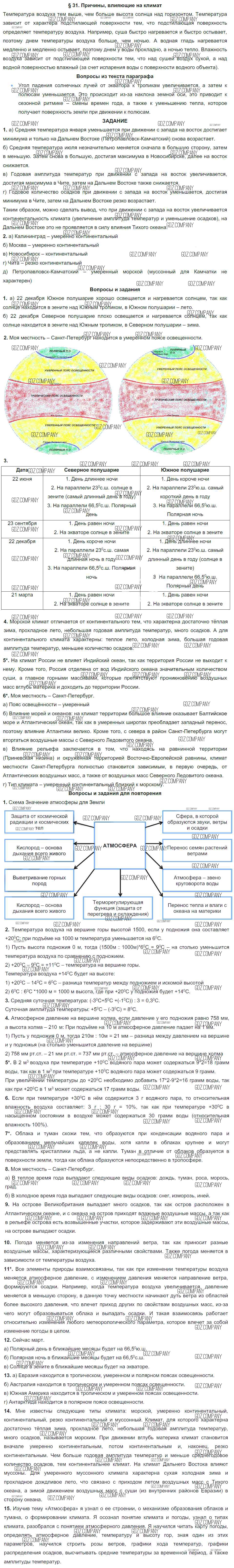 параграф / §31. Причины, влияющие на климат
