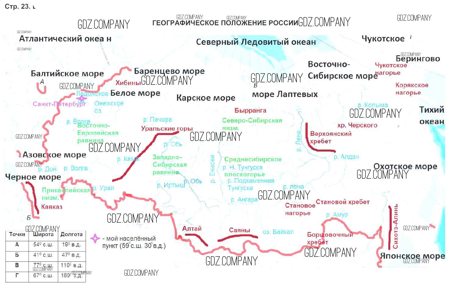 Здесь готовые ответы по Географии за 6 (шестой) класс от Курчина, Курбский Контурные карты (издательство: Дрофа от 2019 г.) № стр.23