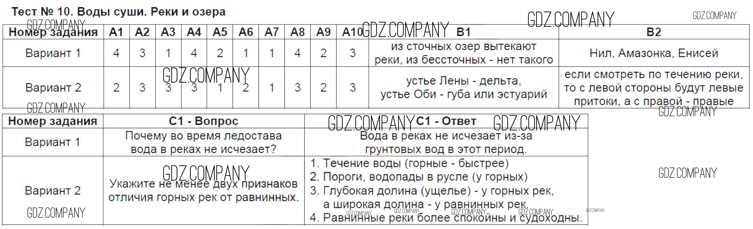 тест / тест-10. Воды суши. Реки и озера
