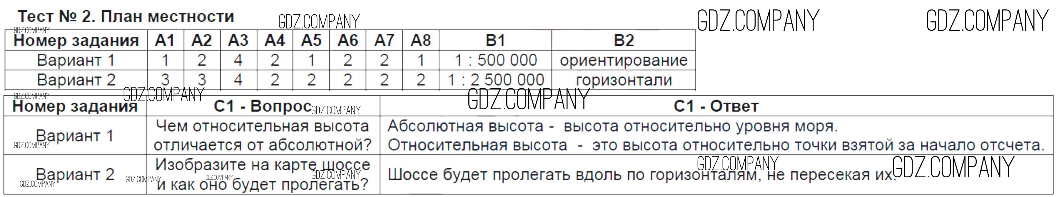 Здесь готовые ответы по Географии за 6 (шестой) класс от Жижина Контрольно-измерительные материалы (КИМ) (издательство: ВАКО от 2018 г.) № Тест-2. План местности