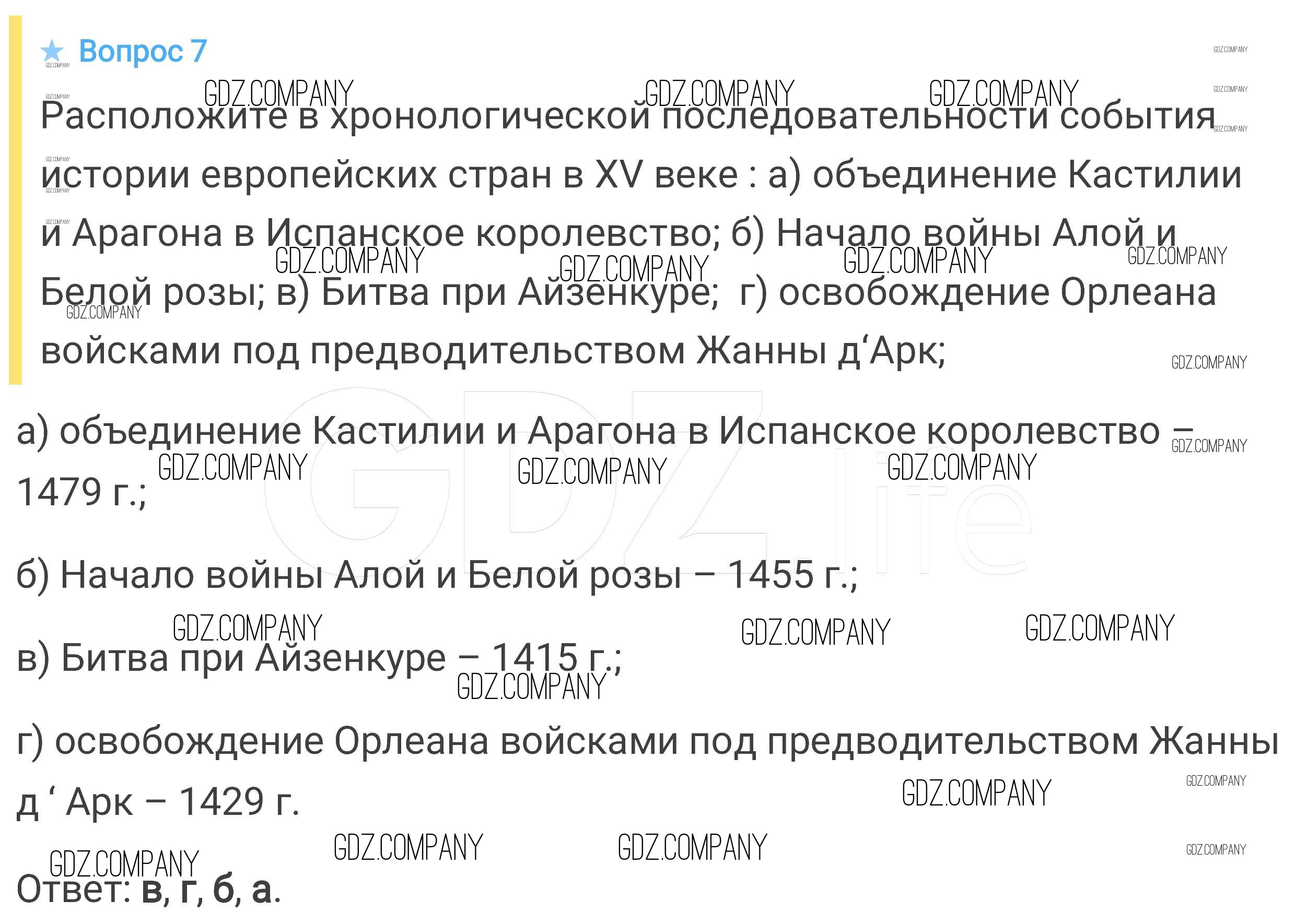 Здесь готовые ответы по Истории за 6 (шестой) класс от Агибалова, Донской Учебник (издательство: Просвещение от 2014 г.) № 7