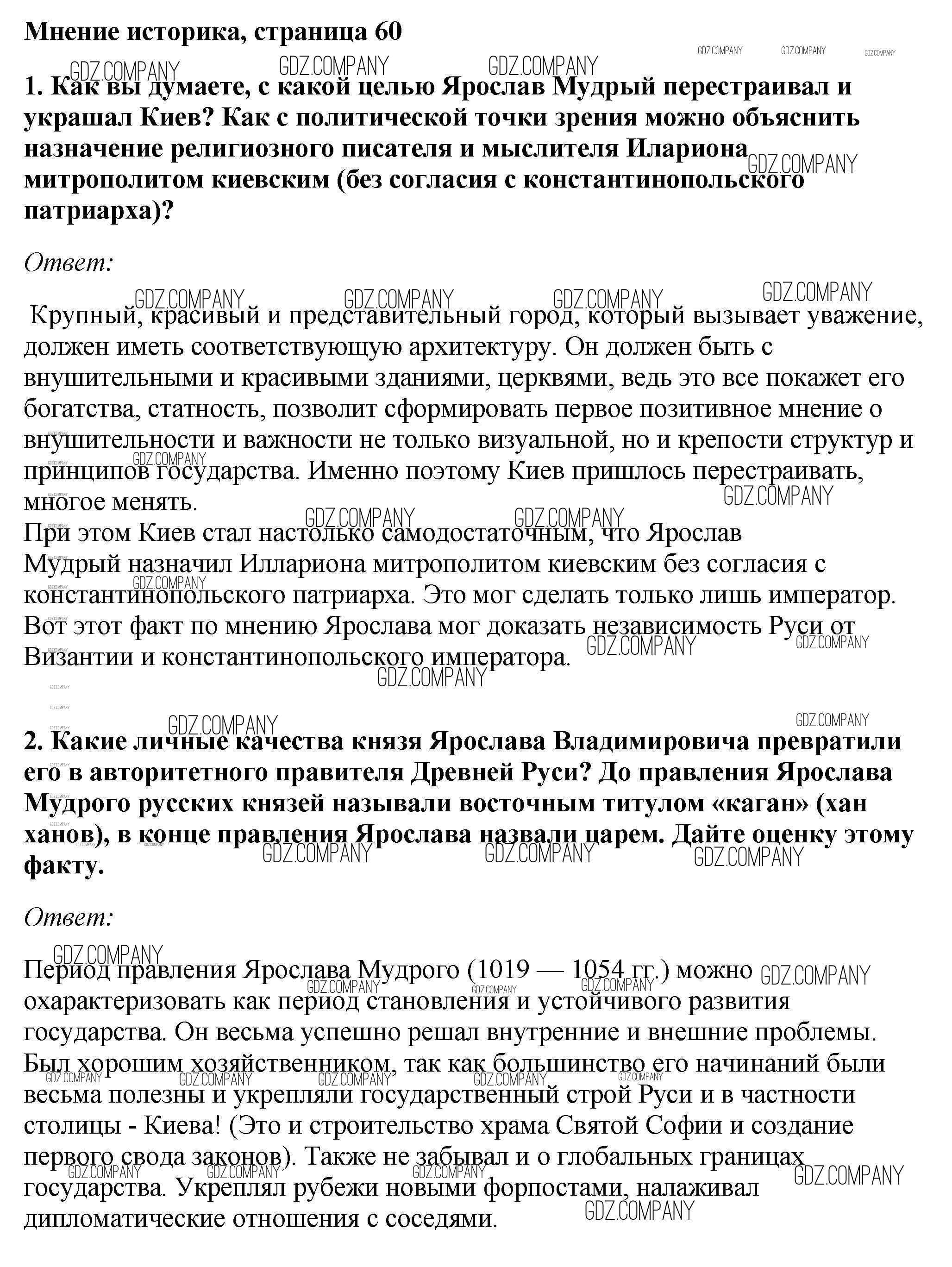 Здесь готовые ответы по Истории за 6 (шестой) класс от Андреев, Федоров Учебник Вертикаль (издательство: Дрофа от 2016 г.) № стр.60