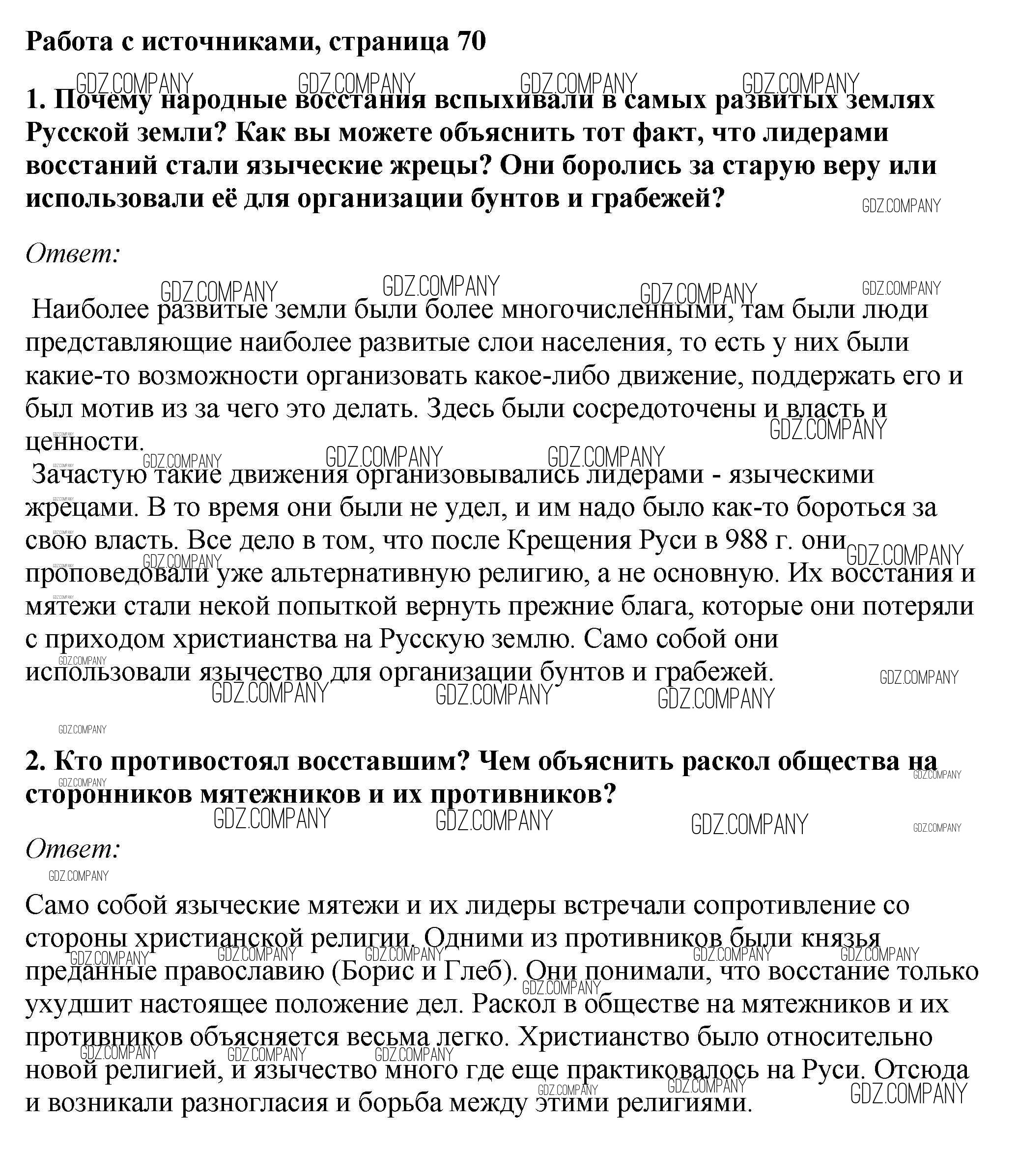 Здесь готовые ответы по Истории за 6 (шестой) класс от Андреев, Федоров Учебник Вертикаль (издательство: Дрофа от 2016 г.) № стр.70