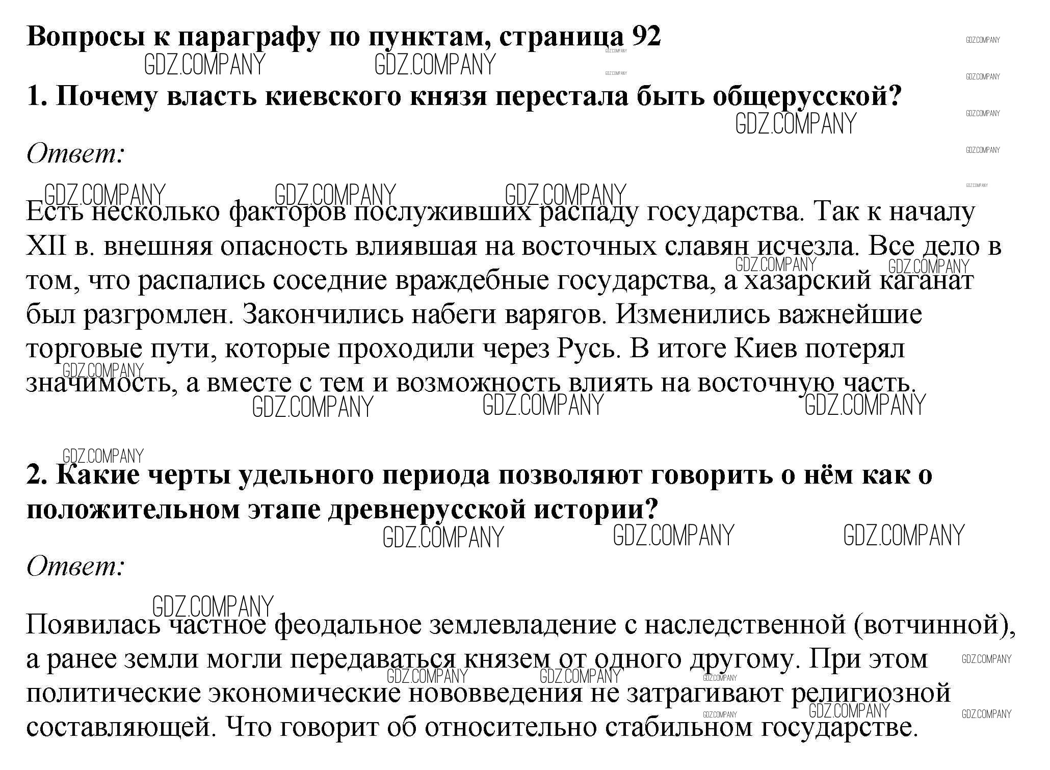 Здесь готовые ответы по Истории за 6 (шестой) класс от Андреев, Федоров Учебник Вертикаль (издательство: Дрофа от 2016 г.) № стр.92