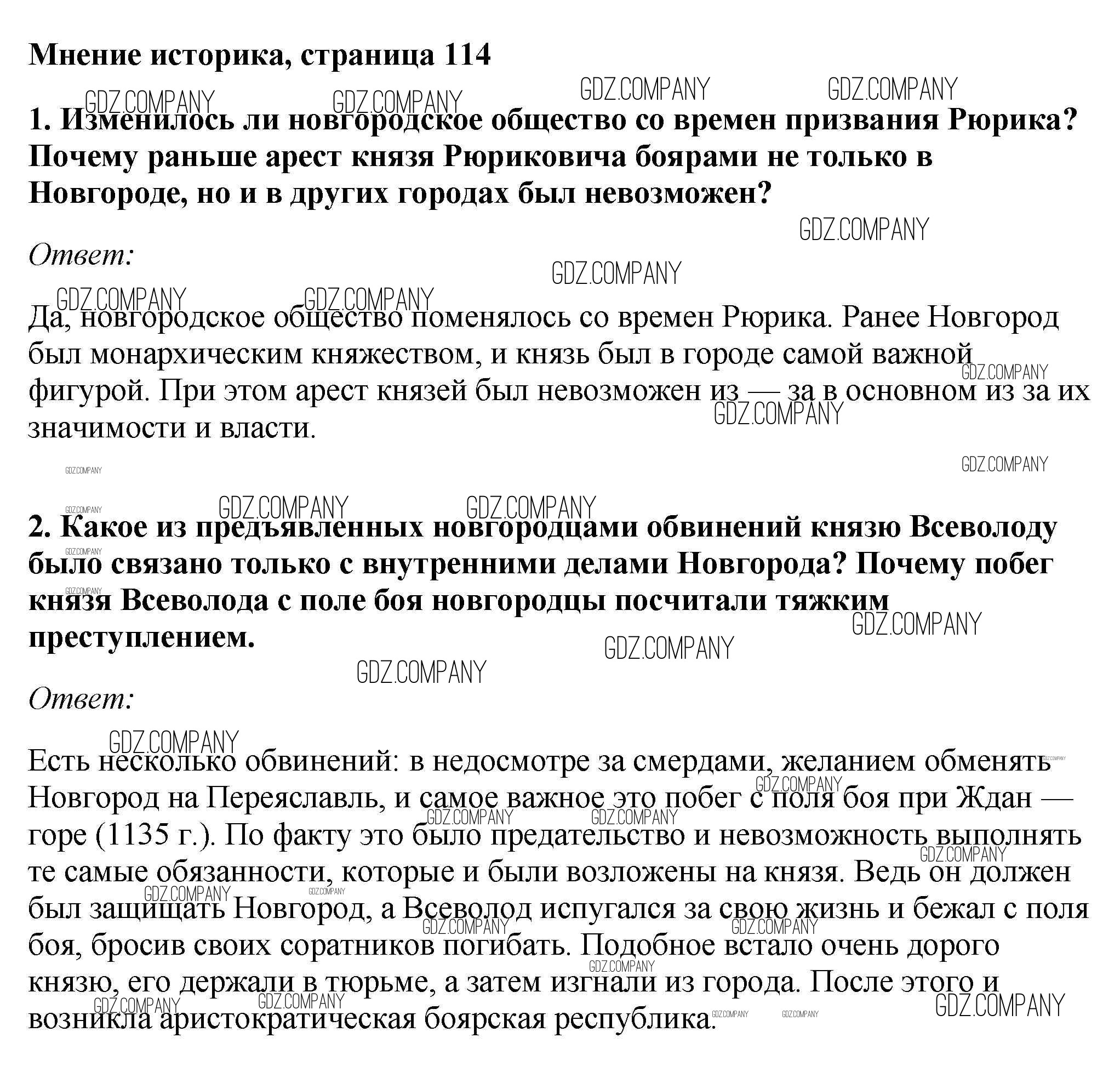 Здесь готовые ответы по Истории за 6 (шестой) класс от Андреев, Федоров Учебник Вертикаль (издательство: Дрофа от 2016 г.) № стр.114