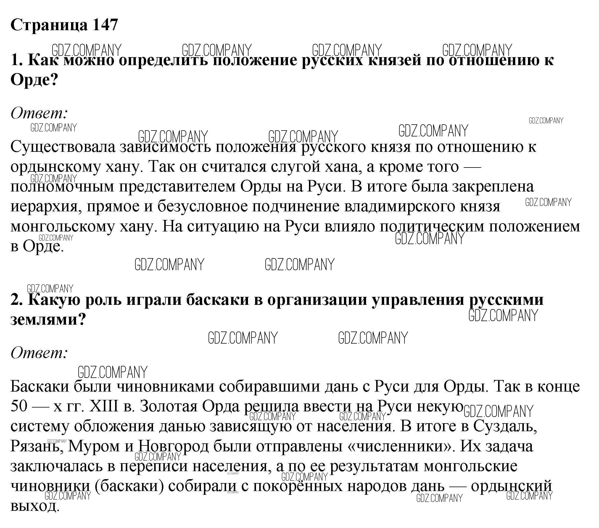 Здесь готовые ответы по Истории за 6 (шестой) класс от Андреев, Федоров Учебник Вертикаль (издательство: Дрофа от 2016 г.) № стр.147