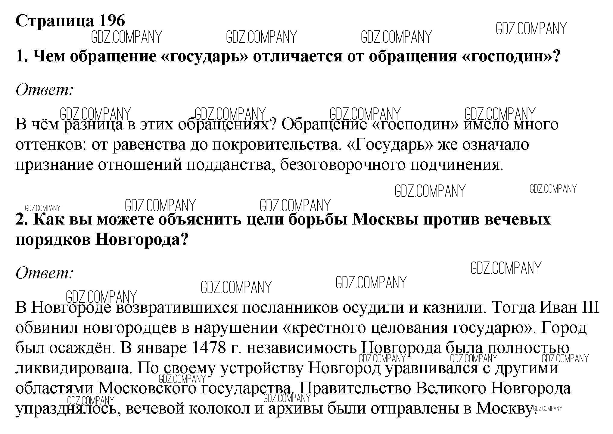 Здесь готовые ответы по Истории за 6 (шестой) класс от Андреев, Федоров Учебник Вертикаль (издательство: Дрофа от 2016 г.) № стр.196