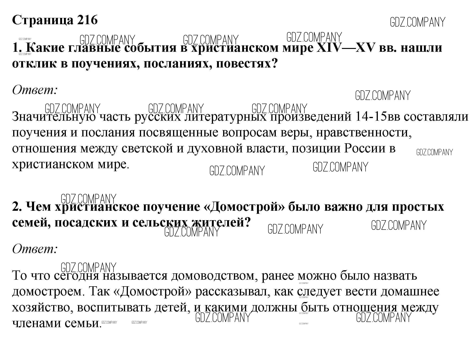 Здесь готовые ответы по Истории за 6 (шестой) класс от Андреев, Федоров Учебник Вертикаль (издательство: Дрофа от 2016 г.) № стр.216