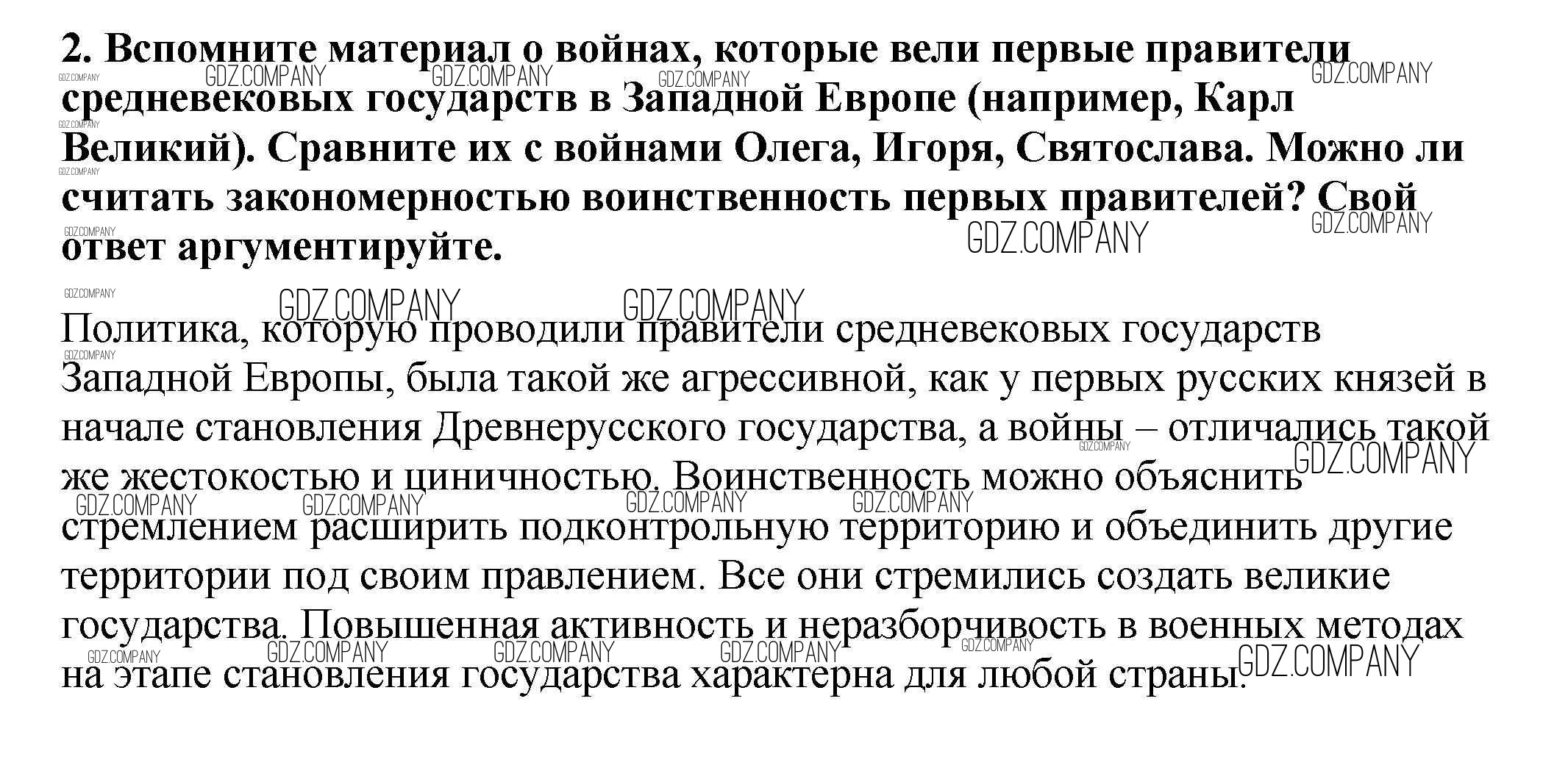 Здесь готовые ответы по Истории за 6 (шестой) класс от Арсентьев, Данилов, Стефанович Учебник (издательство: Просвещение от 2016 г.) № 2