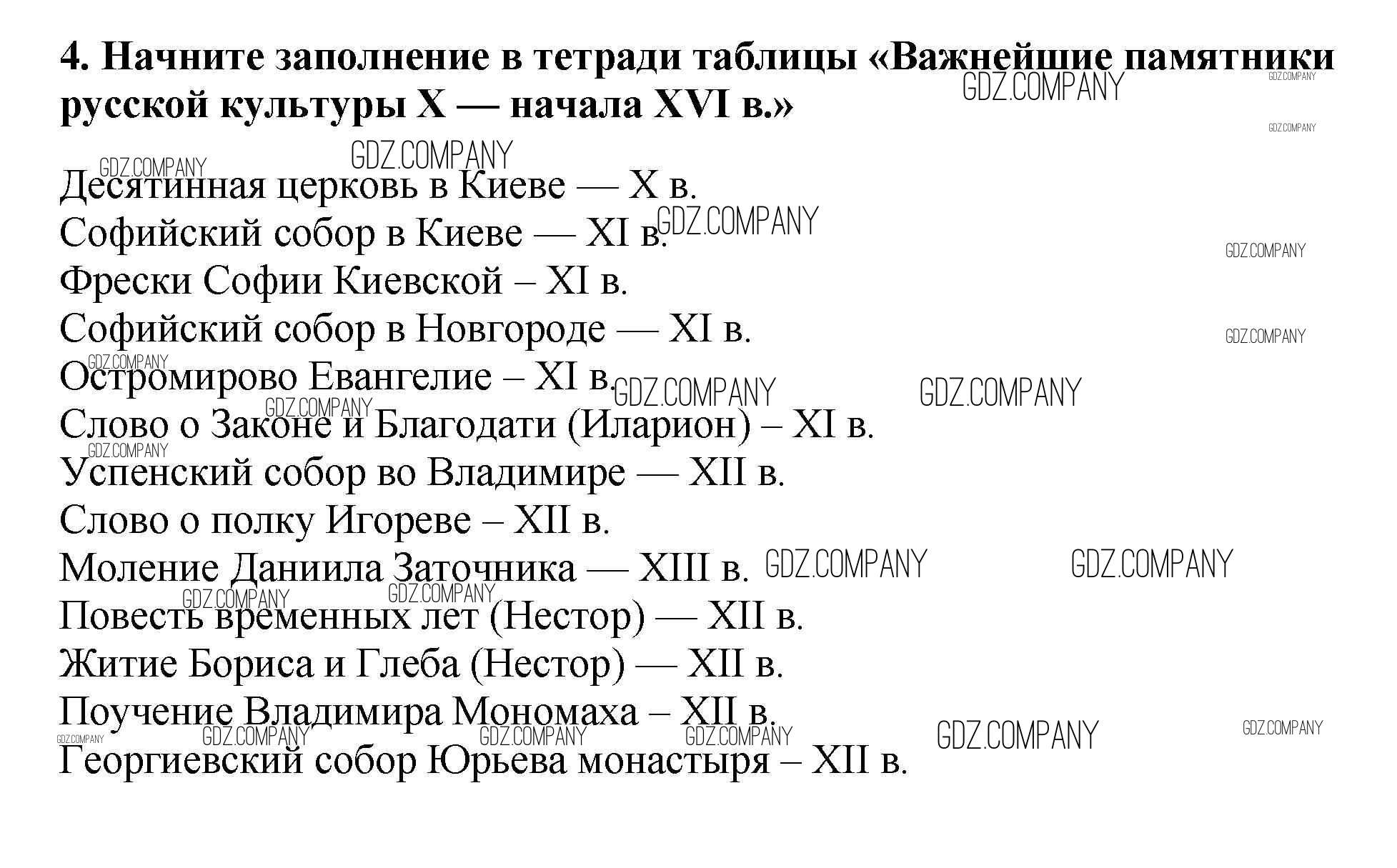 Здесь готовые ответы по Истории за 6 (шестой) класс от Арсентьев, Данилов, Стефанович Учебник (издательство: Просвещение от 2016 г.) № 4