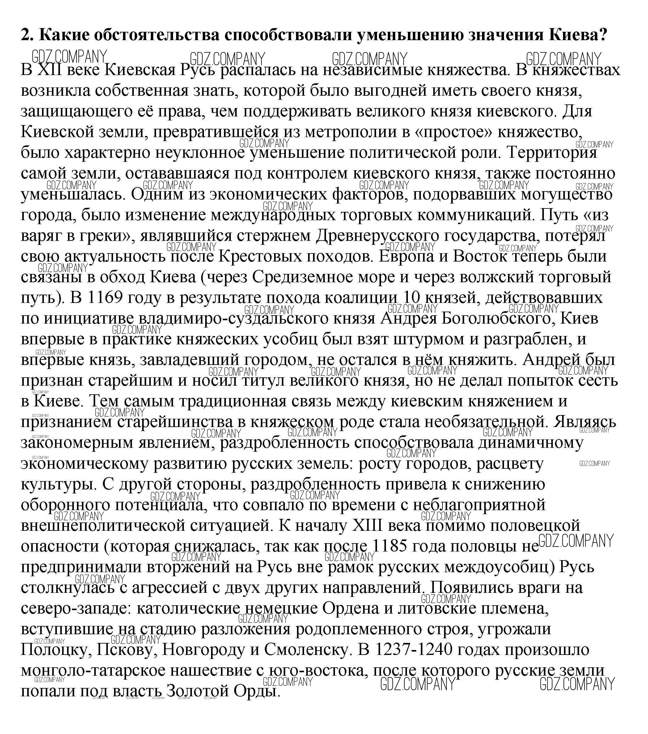 Здесь готовые ответы по Истории за 6 (шестой) класс от Арсентьев, Данилов, Стефанович Учебник (издательство: Просвещение от 2016 г.) № 2