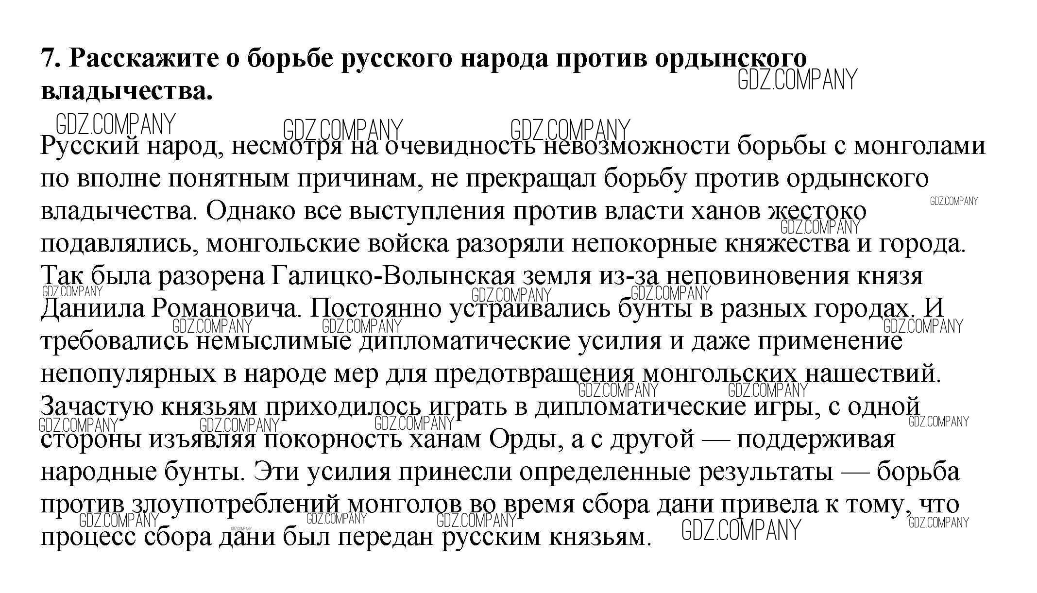 Здесь готовые ответы по Истории за 6 (шестой) класс от Арсентьев, Данилов, Стефанович Учебник (издательство: Просвещение от 2016 г.) № 7